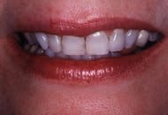 A porcelain veneer is a thin shell of porcelain that fits over the front of the tooth and is bonded in place. A very thin layer of enamel is removed to prepare the tooth and make room for the porcelain veneer, so that the teeth don't appear bulky. The curing light is utilized to bond the veneer to the tooth, creating a stronger, lasting bond. Porcelain veneers are actually a more conservative treatment than porcelain crowns, because more of the natural tooth structure is preserved.