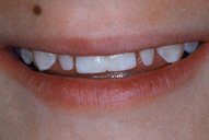 Dr. Hurley created two veneers for Jessica's upper lateral incisors, which were too small. To create beautiful, subtle veneers, Dr. Hurley custom color matched the veneers to the white spots on her other teeth.
