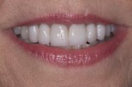 June’s teeth were too long and too big, so much so that she was unable to comfortably close her lips over her teeth. Dr. Hurley performed multiple grafts on front teeth to shorten them, then placed crowns and veneers to dramatically make over June’s smile.
