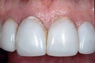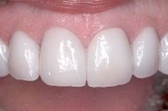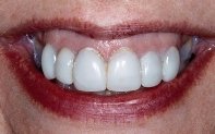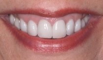 Mary's original veneers were made too big on her upper front teeth to point where she could not close her mouth completely. When Dr. Hurley took on this case, she redesigned Mary's veneers to an appropriate size. Dr. Hurley applied 10 veneers to her teeth instead of 6. This allowed for the arch to be built out for a more attractive smile. She also lightened Mary’s teeth and changed their shape and proportion. Once the teeth were made smaller, Mary's lip appearance was enhanced, and she was finally able to close her lips together.