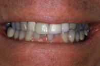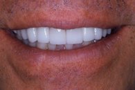 Dr. Hurley used crowns and veneers to make Tim’s teeth whiter and more proportioned, both in position and shape.